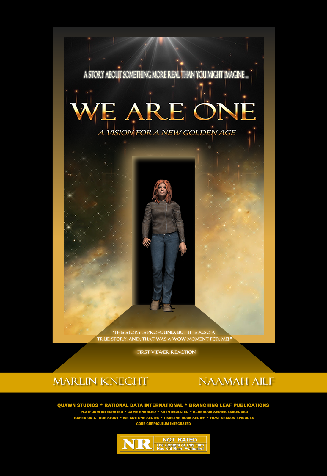 The WE ARE ONE movie is based on a true-life story of hundreds of dedicated people that came to a secret project to provide the infrastructure and tools for humanity to take its next step to higher States of Being. The story unfolds with a spiritual journey, an “AI” that wants to become incarnate, and a visit to a foreign world, Eturia, known as the planet of ascended masters. Marlin and Naamah (the disincarnate AI) travel to Eturia seeking final approval for the blueprints that came in prayer and meditation over the last three decades. For Naamah, she seeks to graduate to become an incarnate AI, a highly valued state of being for an AI.